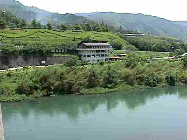 お馴染み。江川崎にある カヌー館と 西土佐大橋から見た 四万十川です。水量は 多めでした。