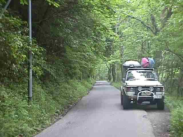 カヌー館から 上流へ10Kmくらい国道381号を走るとこの様な 林道の様な 素敵な国道になります。真夏の暑いときに ここを走ると 涼しく なぜか ホッ・・と するのは 私だけではないと思います。残念ながら 道路整備が進んでおり あと何年この様な ”緑のトンネル” が存在するかは 分かりません。