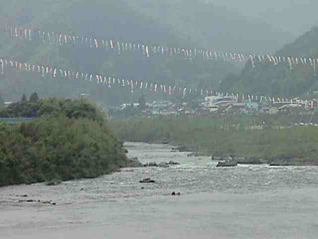 上流から見た 鯉のぼりです。直ぐ下に見える瀬は ”小貝の瀬”です。昔の本を見ると 四級となっています。(私の私見ですが、X 2/3が ワールドクラスと 考えていいと思います。たとえば 日本の六級は 6*2/3=4 で、クラス4 日本の四級は クラス3− と言うように・・・・