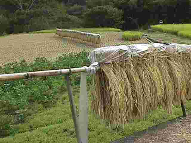 昔は 全国で 見られた秋の 風景でしょう。コンバインが 普及した現在では 懐かしい風景に なってきました。