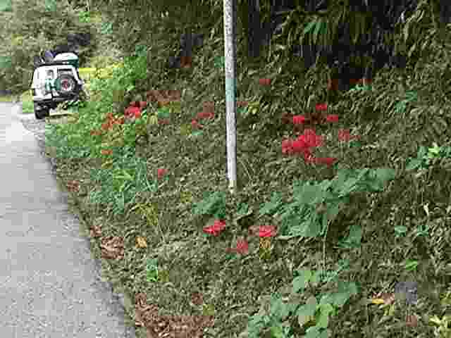 が 咲きかけていました。江川崎と 土佐昭和の 間の 十和村あたりの 田んぼの あぜ道には みごとな