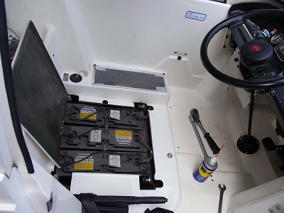 1個の重さ 21Kg X4=84Kg が、座席の下に有ります。車両重量240Kgの、3分の1が、座席の下に有るのです。