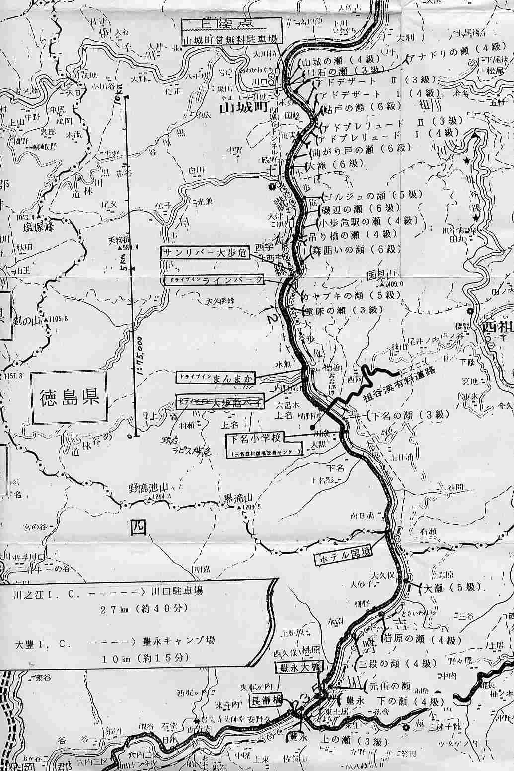 大歩危の出発地点は 長瀞橋下流の 「豊永上の瀬」から ショートコースは 「岩原の瀬」 まで ロングコースは 「ドライブイン ”まんなか”」まで 小歩危の出発地点は 「堂床の瀬」の ”歩危茶屋”から川口駐車場(山城駐車場)までが 普通遊ぶコース