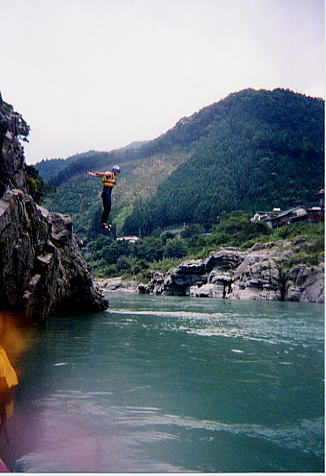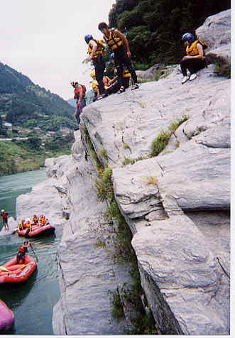 水面から 見ても高いのだが 岩の上から見ると もっと高く感じる !! 話の種に 思い切って飛び込んでみては >>> 日本男児 頑張れ こういう 場面では 女性の方が 割り切りが早いみたい(最近の 傾向と対策)