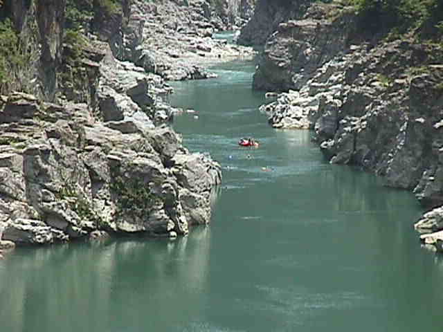 ラフトでは ”うみだらい”の右岸の ビルの3階位の高さの岩の上から 飛び込む遊びも やっている