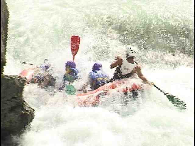 吉野川 カヌールートの 開拓者 青木 勇氏 のラフトチーム。ラフトの 草分け