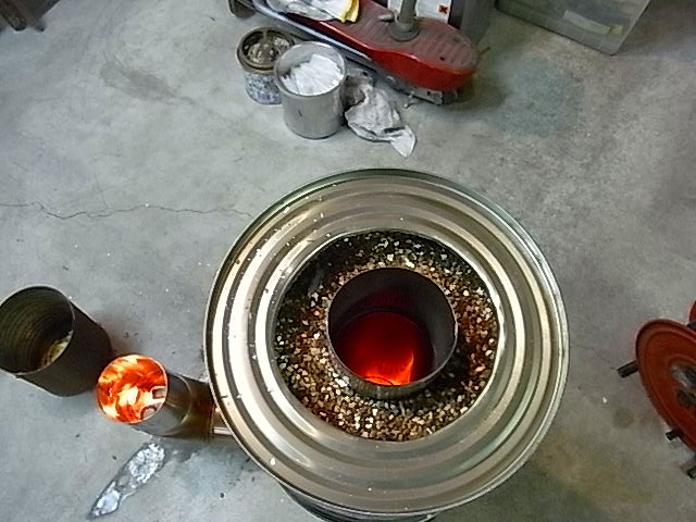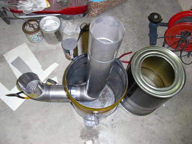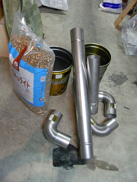 断熱材(バーミキュライト)40Lを、ヒートライザーとペール缶の間に充填します。一応、完成。