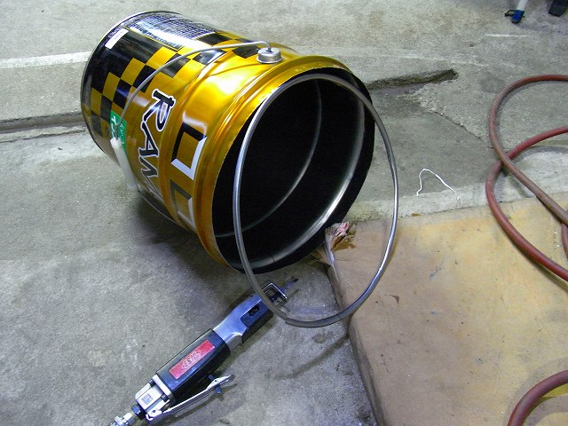 20Lのペール缶2つ。 1つの、口金部分を、カットすると、ぴったりと合体することが出来ます。
