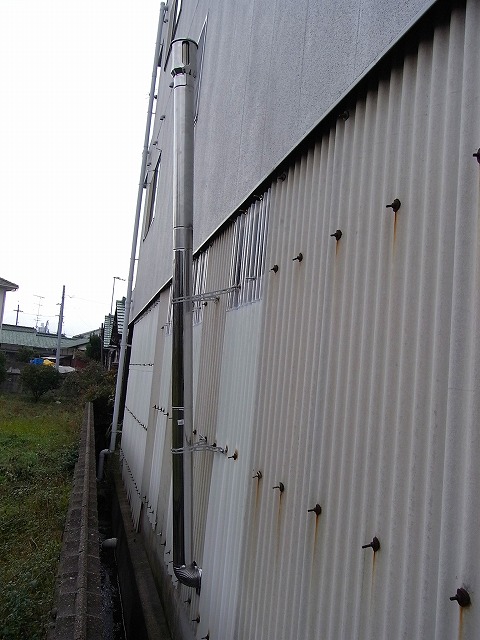 本当は上向きに排気を持って行きたかったのですが、倉庫の構造上出来ませんでした。